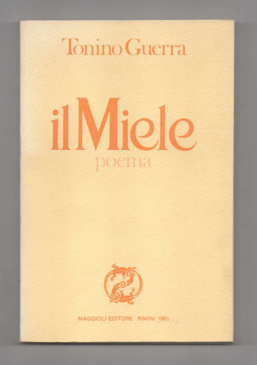 LIBROPrima edizione.Ottimo esemplare (dorso lievemente scolorito; interno fresco e pulito).Poema in dialetto con versione italiana a fronte. «Nella raccolta “Il miele” (1981), che segna il ritorno alla poesia dialettale, la sua lirica si fa più distesa e improntata a una percettibile attenuazione del vernacolo» (dalla voce dell’Enciclopedia Treccani online). -- Oltre che poeta e romanziere, Guerra «ha svolto un'intensa e proficua attività di sceneggiatore cinematografico, imponendosi in breve come una delle presenze più originali e interessanti del cinema italiano degli anni 1960-80» (Enciclopedia Treccani online), sceneggiando tra gli altri i film di Michelangelo Antonioni (da L'«Avventura» a «Blow Up»), «Amarcord» di Fellini, «Viaggio a Citera» di Anghelopulos (che gli valse il premio per la miglior sceneggiatura originale a Cannes nel 1984).