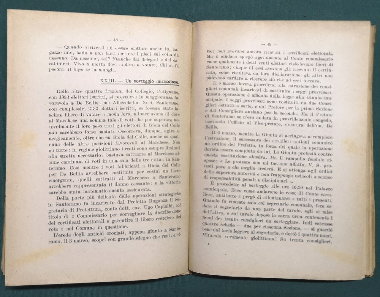 >in-16, pp. 136, broch. edit. con titolo in rosso e nero al piatt ant. Seconda edizione, parzialmente originale poiché aumentata con fatti e testimonianze relative alle elezioni del 1913, raccolte da Ojetti e altri, che costuì il nucleo di questa edizione. Saggio politico di Gaetano Salvemini pubblicato per la prima volta nel 1910 e riedito nel 1919, avente per oggetto i rapporti fra la società italiana nei primi anni del XX secolo e la politica italiana impersonata da Giovanni Giolitti, il ministro della mala vita a cui fa riferimento il titolo. Attraverso l'esempio dei casi esaminati Salvemini denuncia violenze e brogli elettorali messi in atto dai candidati giolittiani, con la connivenza della forza pubblica e delle autorità statali. Buon esemplare, a fogli chiusi.