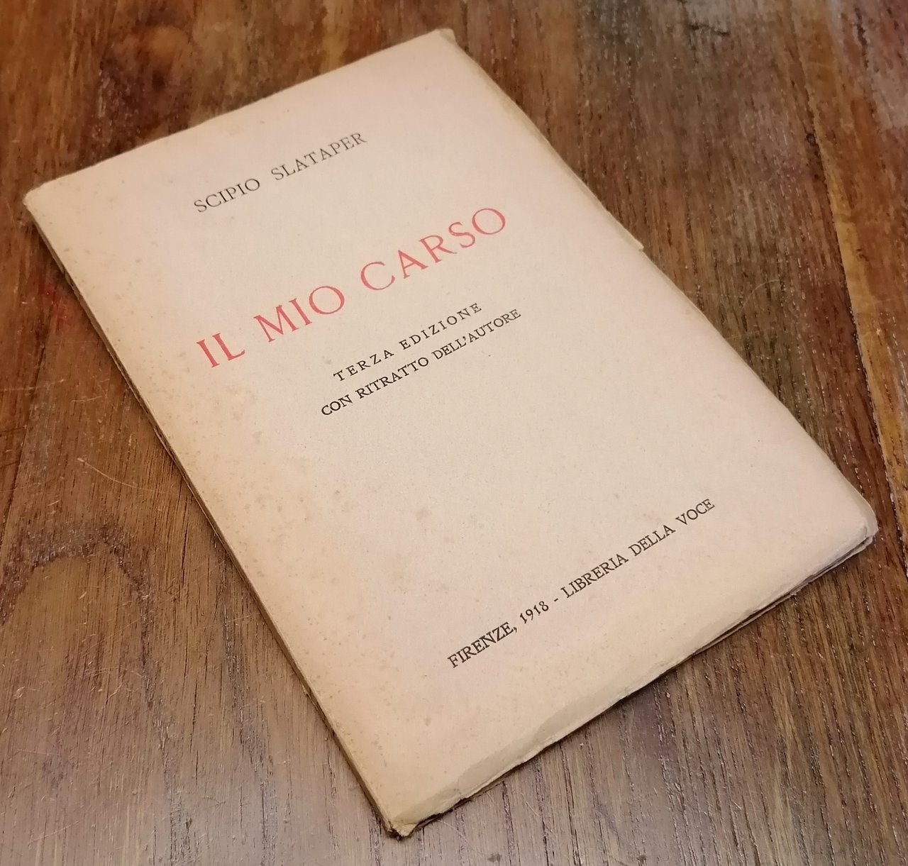In 8°, brossura editoriale con titoli in nero e rosso, pp. 124 + pp. XIV,(3) di Catalogo della Libreria della Voce, con un ritratto fotografico dell'autore in antiporta. Terza edizione. Pochi, ininfluenti puntini di ossidazione al piatto anteriore, peraltro volume ben conservato, parzialmente intonso.
