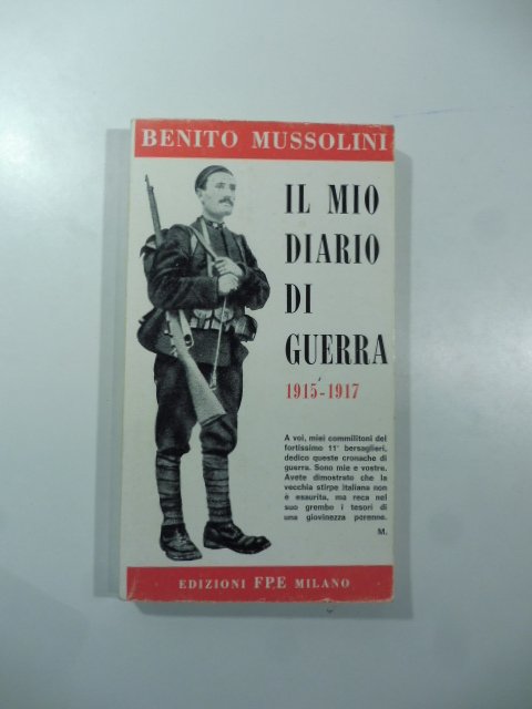 In 16, cm. 11 x 19 pp.166 + (2), brossura editoriale illustrata. Pagine leggermente ingiallite dal fattore tempo. Collana: Fatti del nostro tempo, Anno II n. 3 - Aprile 1966. A cura di Gianguglielmo Rebora. Questo diario di guerra venne pubblicato per la prima volta (in quindici corrispondenze dal fronte, a partire dal dicembre 1915 sino al febbraio 1917) sul giornale 'Il Popolo d'Italia' mentre Mussolini stesso era il direttore del giornale. In ottomo stato.