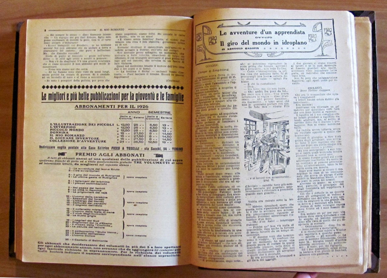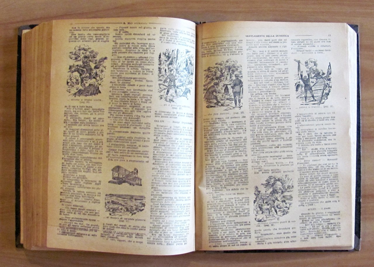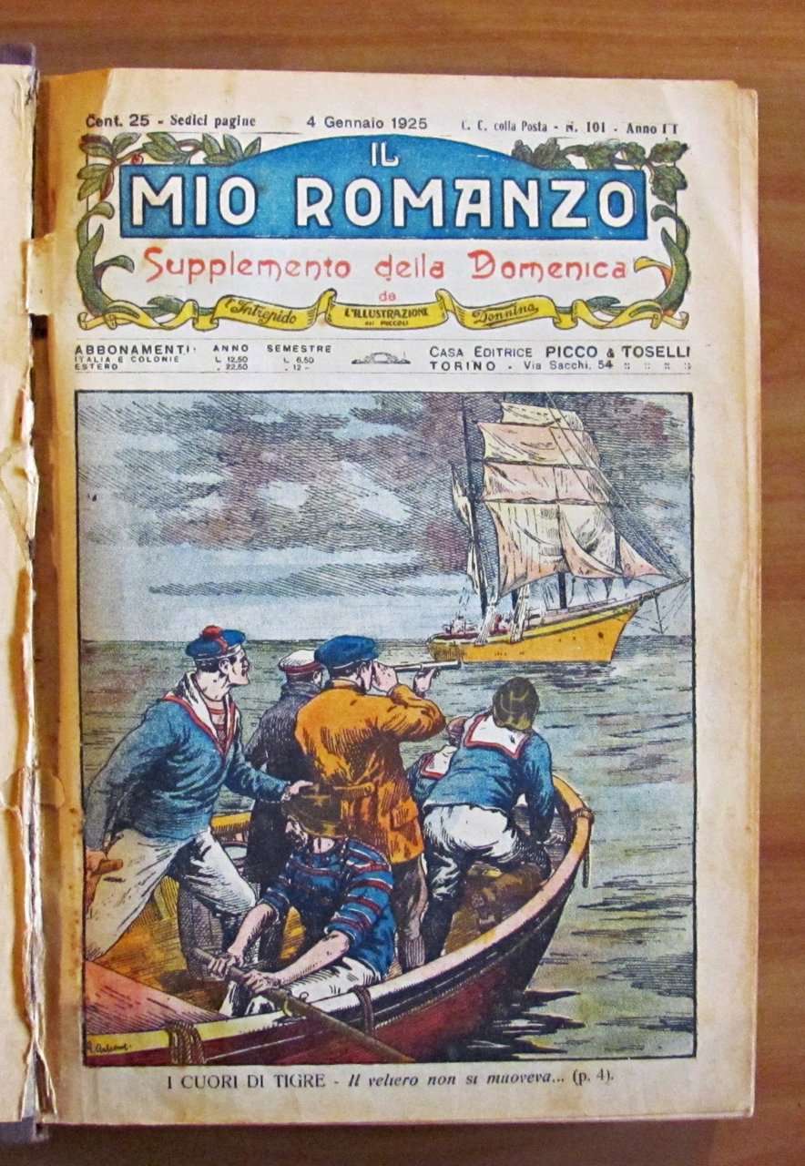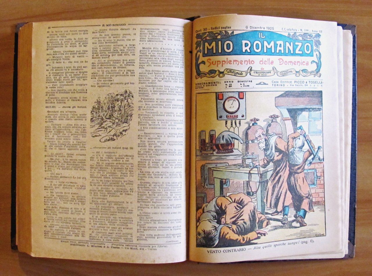 Raccolta Anno III - 101/152. Copertina, 1 illustrazione a colori n.t. e diverse illustrazioni in b/n in ciascun fascicolo. Dal fascicolo 141 al 152 non c'è l'illustrazione a colori al centro. Ed. Picco e Toselli - Torino, 1925. Opera in 51 fascicoli rilegati in mezza tela. La sola prima pagina presenta imperfezioni alla cerniera. Il fascicolo 139 ha una mancanza di un paio di centimetri in basso a pagina 5 e 11. 20x28: pp.16 cadauno. BUONISSIMO STATO , Molto buono (Very Good)