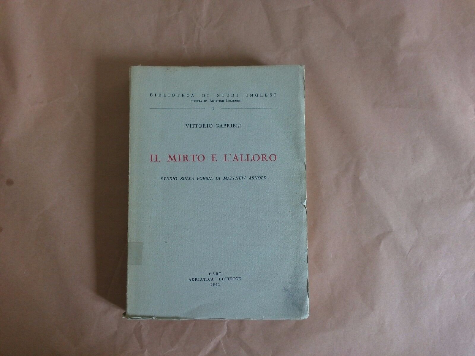 Vittorio Gabrieli - Il mirto e l'alloro Adriatica Editrice - Prima ed. 1961 Libro in buone condizioni, minimi segni del tempo: qualche sottolineatura a matita, rari appunti a penna blu margine pagine, timbro, etichetta con nastro per catalogazione privata. Non esitate a contattarci per altre foto o richieste. Saremo lieti di soddisfare ogni vostra esigenza.