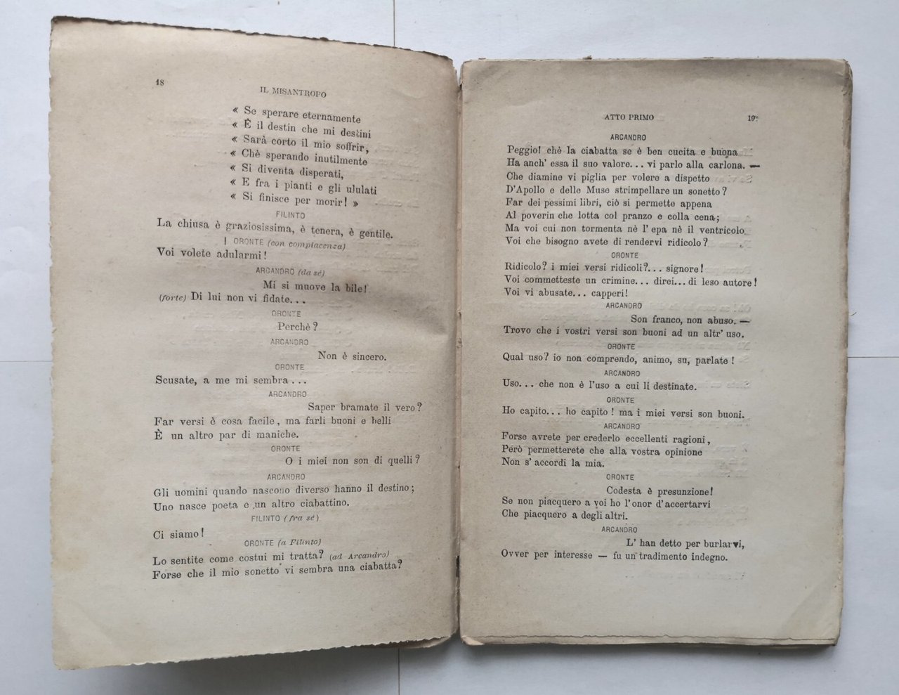 IL MISANTROPO di Moliere 1876 Libreria Editrice libro antico commedia teatro