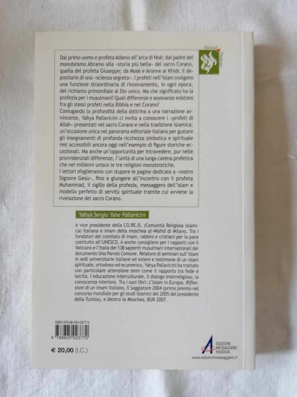 Yahya Pallavicini, ci invita a conoscere i profeti di Allah presentati nel sacro Corano e nella tradizione islamica: da Adamo a Noé; dal padre del monoteismo Abramo alla "storia più bella" del Corano, quella di Giuseppe; da Mosé e Aronne a Khidr, il profeta immortale depositario di una "scienza segreta". I lettori sfoglieranno poi con stupore le pagine dedicate a "nostro Signore Gesù", la "parola di verità" che Dio ha posto tramite l'angelo Gabriele nel grembo della Vergine Maria e che i musulmani attendono come sigillo della santità alla fine dei tempi. Infine, l'autore ci conduce all'incontro con il profeta Muhammad, il sigillo della profezia, messaggero dell'islam e modello perfetto di servitù spirituale, tramite cui avviene la rivelazione del sacro Corano. Buone condizioni generali (si forniscono ulteriori foto su richiesta) Ottime condizioni, nulla da segnalare
