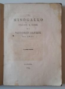 IL MISOGALLO PROSE E RIME DI VITTORIO ALFIERI DA ASTI LONDRA 1799
