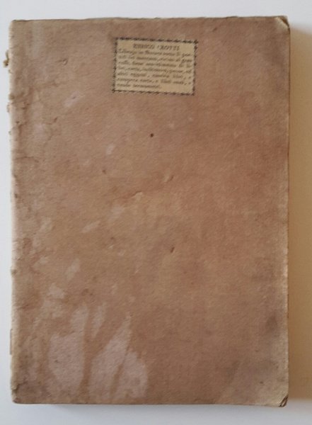 In 8°, pag. [10] 184, legatura cartonata coeva con applicazione cartacea del libraio venditore, incisione in antiporta