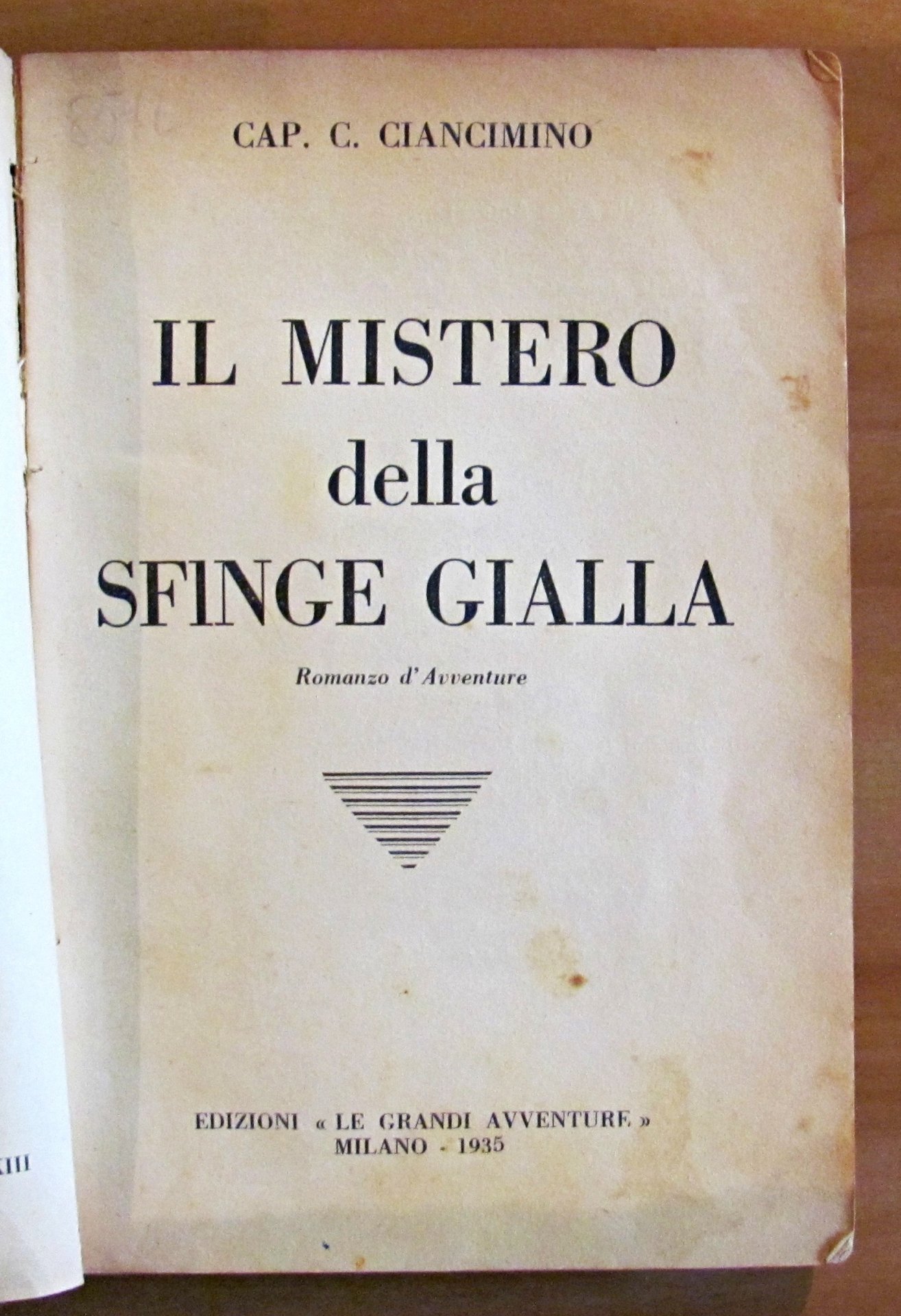 Illustrazioni in b/n n.t. a piena pagina di Gallieni. Ed. Le Grandi Avventure - Milano, 1935. Brossura editoriale muta con ali. Riparazioni nel testo di alcune pagine (come da foto). 15x21,5; pp.173. RARO. BUONISSIMO STATO , Molto buono (Very Good)