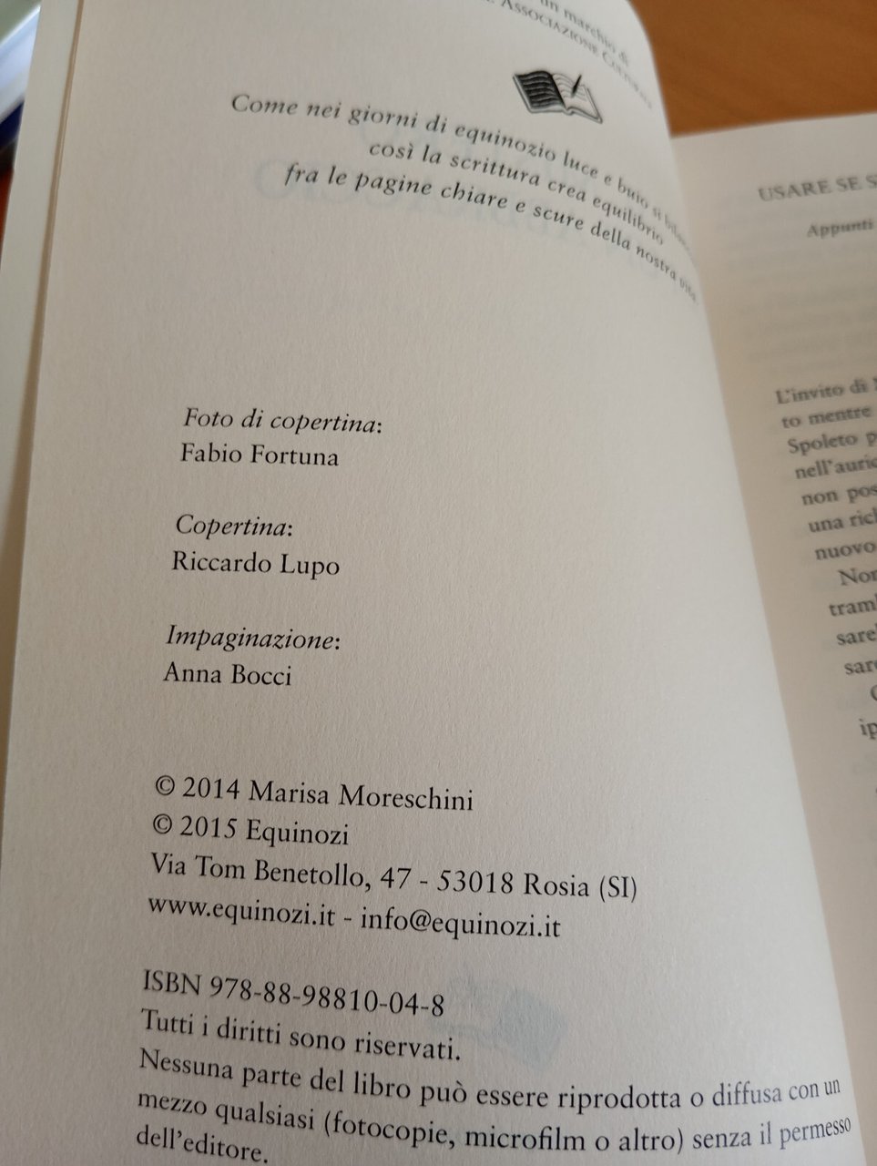 Il mistero di un abbraccio, Marisa Moreschini, Equinozi, 2014