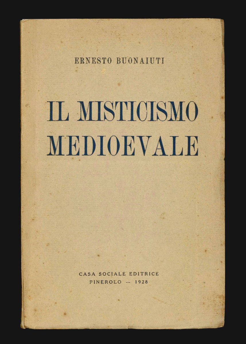 LIBRO Edizione originale. Ottimo esemplare, appena uniformemente e normalmente brunito e con appena percettibili occasionali minute fioriture marginali. Rarissimo. Messo all’indice dal Sant’Uffizio (come tutta la produzione di Ernesto Buonaiuti), il presente studio è da inquadrare nell’ambito della svolta negli interessi dell’autore, dal cristianesimo delle origini a quello medievale, seguita al grave esaurimento che colse lo studioso nel 1921 e alle pressioni delle autorità ecclesiastiche. -- Sacerdote, filosofo e storico della Chiesa, Buonaiuti fu fin dal seminario esponente della cosiddetta corrente modernista, di tendenze eterodosse e riformiste, vicina agli ambienti del socialismo. Riuscì comunque a conservare l’abito talare e a conquistare incarichi di docenza, in virtù della sua indubbia professionalità e cultura (molto apprezzate anche all’estero), fino al 1924: «Venuta meno la copertura precedentemente offerta a Buonaiuti dal segretario di Stato vaticano Pietro Gasparri, il Sant’Uffizio ottenne nel 1924 la sua definitiva scomunica e la messa all’Indice di tutte le sue opere, accompagnata il 30 gennaio 1925 dall’ingiunzione a deporre l’abito talare» (Losito), perfezionata tra 1926 e 1930. Nel frattempo Buonaiuti aveva avuto modo di professare un convinto antifascismo, così che venne definitivamente messo al bando dall’accademia. «Contro ogni razionalità giuridica, la sua radiazione dai ruoli accademici decretata nel 1931 fu mantenuta anche dopo la caduta del regime, per le ripetute pressioni del Vaticano sui primi fragili governi democratici postbellici e, in particolare, per la persistente ostilità del Sant’Uffizio» (ivi); ma l’atteggiamento di Buonaiuti, evidentemente ispirato al motto latino “frangar, non flectar”, non venne meno neppure sul letto di morte, avvenuta nella primavera del 1946. Losito, Buonaiuti, voce del Contributo italiano alla storia del Pensiero: Storia e Politica (Roma: Treccani, 2013)