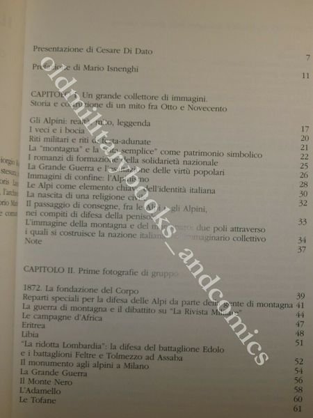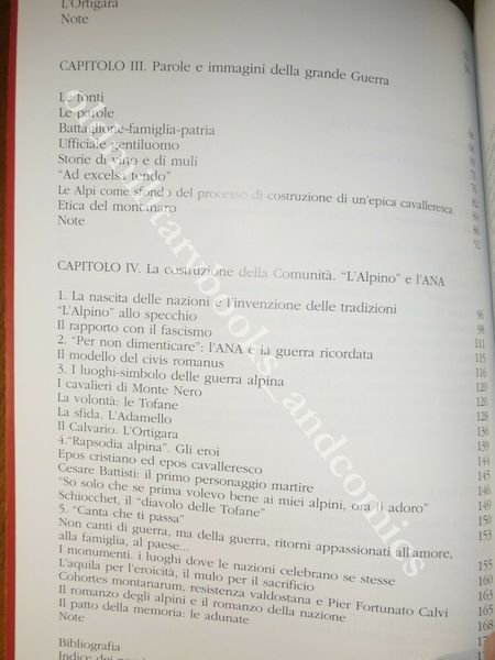 DESCRIZIONE: Gaspari Ed. Udine 2004, br. ed. ill. a col. con alette, pp. 193 num. ill. b/n n.t. in 8°. Il mito degli Alpini si è concretizzato con lo scorrere del tempo come uno dei miti fondanti dell'Italia unita. Dalla conquista del Montenero ai massacri dell'Ortigara, si identificano i luoghi, le circostanze e i personaggi del costituirsi della vera e propria epopea degli Alpini. In questo viaggio della e nella memoria l'Alpino-tipo si concretizza e si racconta non come un qualunque contadino-soldato pieno di disciplina, passività e rassegnazione, anzi un buon montanaro e un buon alpino sono pieni di intraprendenza, sanno arrangiarsi in qualunque circostanza, sono dei cento-mestieri allevati dalla vita ad affrontare le situazioni e a cavarsela. Questi risvolti comportamentali danno origine a tutta un'aneddotica, un colore e anche a una letteratura che mostra come si alimenti il mito che intanto vien formandosi di questo soldato e uomo del popolo in divisa, fante, ma fante con la penna assolutamente speciale e con una sua pronunciata identità. Essi funzionano da sfogo e valvole di sicurezza, nella quotidianità colorita di una cronaca fitta di fiaschi di vino e di muli, salva però sempre l'adesione profonda a un mondo intimamente rispettoso dell'ordine e delle gerarchie 'naturali'. Espressione di una disciplina sociale diversa e civilmente superiore rispetto alla disciplina cieca imposta d'autorità sui piazzali delle caserme, ma soprattutto al rinnovamento di un patto della memoria, degli affetti: un inno alla giovinezza e all'ingenuità perduta per sempre nella morsa della Grande Guerra. CONDIZIONI: Ottime, piega alla cop. posteriore. PESO / WEIGHT: 500 gr. without package