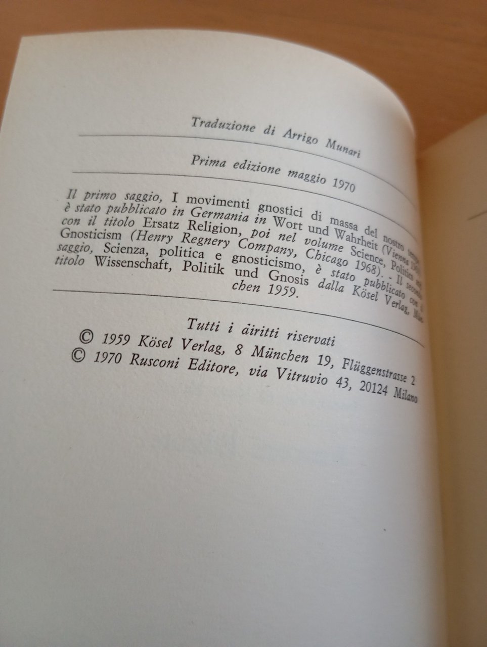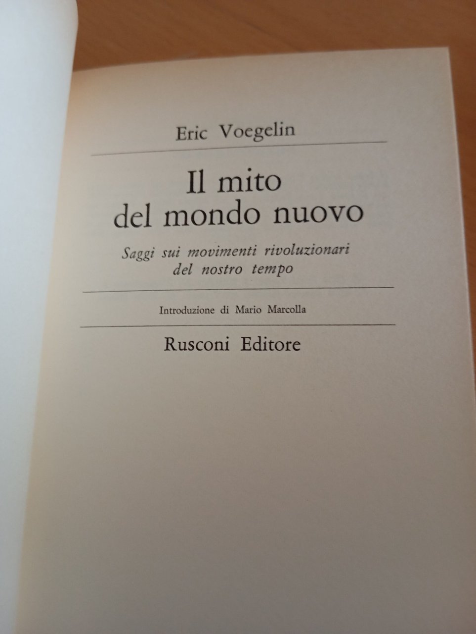 Il mito del mondo nuovo, Eric Voegelin, Rusconi, 1970 prima edizione