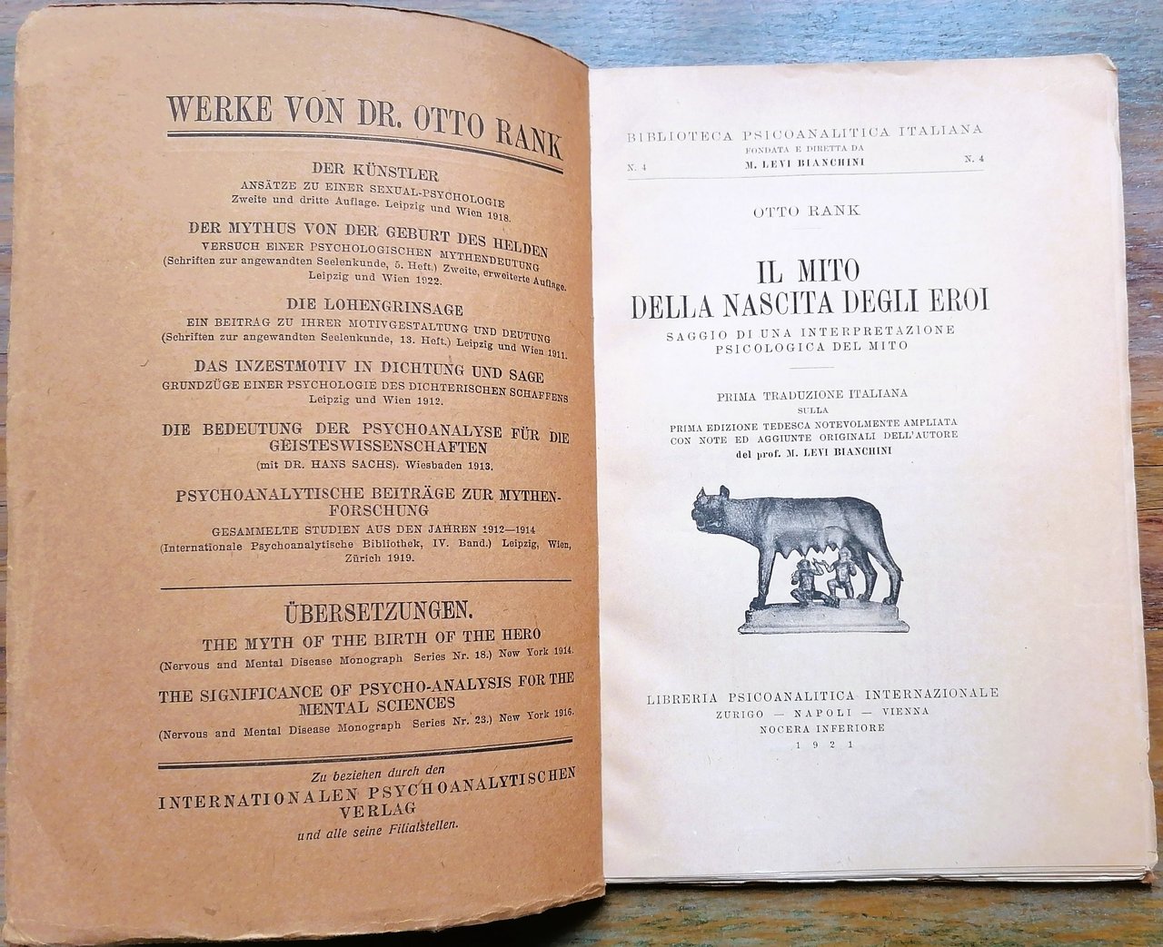 (Mitologia - Psicoanalisi) In 8°, brossura editoriale , pp. (4),96. Prima traduzione italiana sulla prima edizione tedesca, notevolmente ampliata con note ed aggiunte originali dell'autore, del Prof. Marco Levi Bianchini. "Biblioteca Psicoanalitica Italiana" (4). Ben conservato.