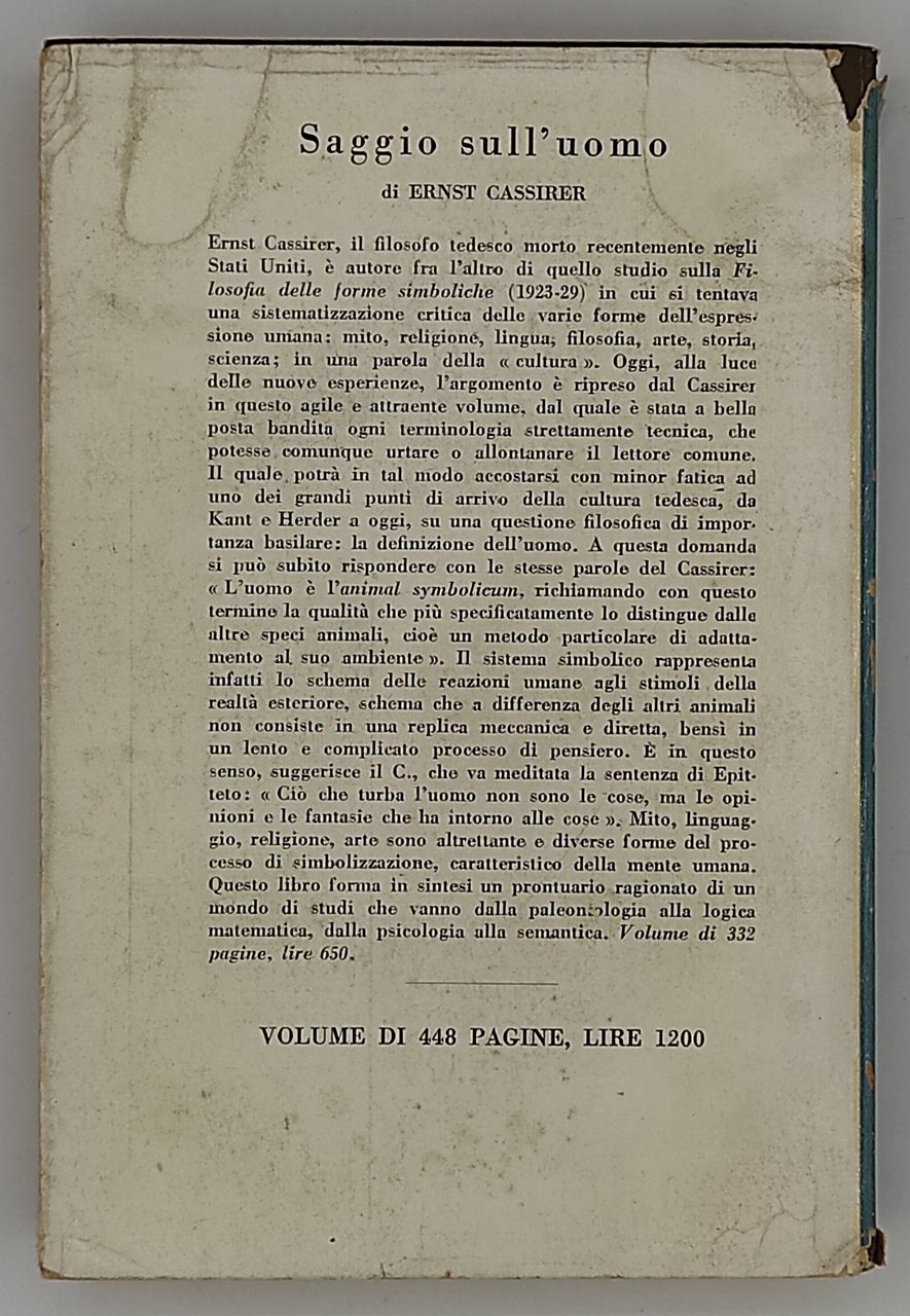 PRIMA EDIZIONE. Sovracopertina mostra segni d'usura, strappi, in particolare sui bordi. Tagli imbruniti. Interno in buone condizioni. No pieghe, no strappi, no macchie o sottolineature. Buona copia.