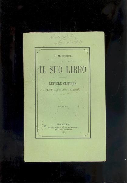 IN 8°, pp. 93, COPERTINA EDITORIALE IN BROSSURA VERDE CON TITOLO ENTRO CORNICE.<BR>CARLO MARIA CURCI, CON UN GRUPPO DI GESUITI A NAPOLI, FU IL FONDATORE DELLA RIVISTA " CIVILTA' CATTOLICA ". L'IDEA CHE LO SPINSE ALLA FONDAZIONE DELLA<BR>RIVISTA FU QUELLA DI DIFENDERE " LA CIVILTA' CATTOLICA ", MINACCIATA DAI NEMICI<BR>DELLA CHIESA, IN PARTICOLARE DAI LIBERALI E DAI MASSONI, CHE ANDAVANO ISPIRANDO<BR>MOLTE LINEE PORTANTI DELL'ITALIA RISORGIMENTALE. IL PRIMO n° USCI' IL 6 APRILE 1850,<BR>DIRETTORE FU PADRE CURCI E SU SUA SPECIFICA RICHIESTA LA RIVISTA FU PUBBLICATA <BR>IN ITALIANO, E NON IN LATINO, COME AVREBBERO VOLUTO I SUPERIORI GESUITI.<BR>PADRE CURCI, OTTENNE IL PIENO APPOGGIO DI PIO IX. A CAUSA DELLA CENSURA ORDINATA DALLA POLIZIA DEL REGNO DELLE DUE SICILIE, LA REDAZIONE DOPO POCHI MESI FU TRASFERITA A ROMA E USCI' IN FASCICOLI QUINDICINALI DI 128 PAGINE. LA CIVILTA' CATTOLICA SOSPESE LE PUBBLICAZIONI DOPO IL 20 SETTEMBRE 1870 IN SEGUITO ALL'INGRESSO DELLE TRUPPE ITALIANE IN ROMA. LA REDAZIONE FU TRASFERITA A FIRENZE DOVE RIAPPARVE IL 24 DICEMBRE SUCCESSIVO. LA SEDE RITORNO' DEFINITIVAMENTE A ROMA IL 26 DICEMBRE 1887. OTTIMA CONSERVAZIONE. ID 1984