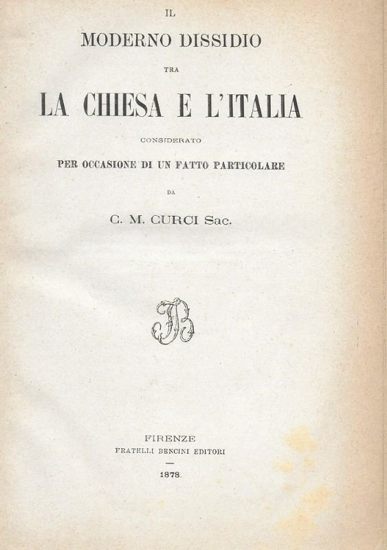 Il moderno dissidio tra la Chiesa e l'Italia, considerato per occasione di un fatto particolare.