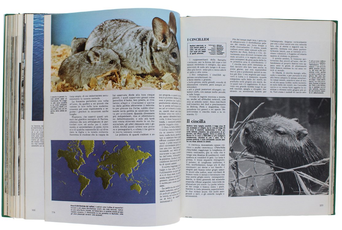 (Codice SN/0620) In 4° (32,5 cm) 6 grandi volumi, 3544 pp. complessive. Grande enciclopedia zoologica, splendidamente illustrata: 4202 fotografie in nero e a colori, molte a piena pagina e 212 cartine. Cosí strutturata: Mammiferi: 2 volumi, Uccelli (2 volumi), Rettili, anfibi, pesci (1 volume), Invertebrati (1 volume). Indice analitico generale in fine. Solide, eleganti legature similpelle editoriale verde, fregi e titolo oro ai dorsi. Ottimo esemplare. IMPORTANTE: GARANTIAMO LA SPEDIZIONE CON ACCURATO IMBALLO: i libri arriveranno in perfette condizioni. ~~~ SPEDIZIONE IN ITALIA SEMPRE TRACCIATA