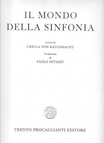 in 4°, pp. 323; p/tela edit. bianca con tit. in oro. Traduz. di P. Petazzi; nascita e evoluzione della sinfonia, relazioni tra compositori, esecutori, organizzatori, pubblico e critica, evoluzione del gusto, della committenza, dei mezzi e dell'ambiente, con centinaia di ill. a colori e in b/n, bibliografia, discografia, brevi schede biografiche degli autori, indice dei nomi e delle ill. In ottimo stato. 019/27
