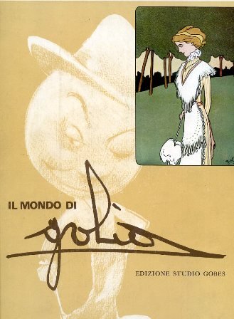 In-4°, pp. 173, (10), legatura editoriale t. tela marrone con titolo in bianco al piatto e al dorso. Custodia figurata a colori. Interamente illustrato con 235 riproduzioni di lavori di Golia a colori e in b.n. n.t. e f.t. e con le riproduzione f.t. e n.t. di facsimili di autografi. Stato di nuovo. Dedica autografa al critico d'arte Vitaliano Rocchiero della moglie di Golia, autrice anche della breve dedicatoria postuma alla memoria del marito. Prima edizione, stampata in 1000 esemplari numerati (n° 432). Excursus sull'intera produzione grafica di Eugenio Colmo, detto 'Golia' (Torino, 1885-ivi, 1967), contenente anche cenni sulle sue attività artistiche 'minori' di ceramista, creatore di bambole, disegnatore di pubblicità. Scritti di autori vari, tra cui Dina Rebaudengo, Gec, Sergio Tofano, Carlo Bisi, Giovanni Manca, Arnaldo Fraccaroli, Nino Salvaneschi, Térésah, Golia stesso. Con profilo biografico di Golia e indice finale delle illustrazioni. Compagno liceale di Gozzano, Golia iniziò la sua attività di caricaturista collaborando a Due di picche e Torino ride e dirigendo il Pasquino dal 1904 al 1906. Nel 1911 organizzò con Giovanni Manca la prima Mostra internazionale di umorismo, durante l'Esposizione di Torino per il 50° anniversario dell'Unità d'Italia, e collaborò, tra il 1912 e il 1914 con testate diverse (Adolescenza, La donna, Prisma, Guerin sportivo, ecc.). Nel 1914 fondò con Caimi e Pitigrilli il settimanale satirico Numero. Fu attivissimo sino ai suoi ultimi anni come illustratore, copertinista, cartellonista pubblicitario, ceramista, disegnatore di bambole dall'inventiva costantemente felice.