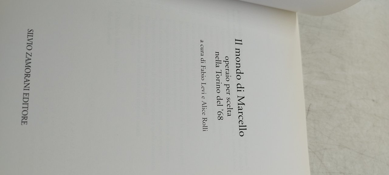 fbio levi e alice rolli il mondo di marcello operaio per scelta nella torino del '68. , silvio zamorani editore 2006 italiano, 172 °°
