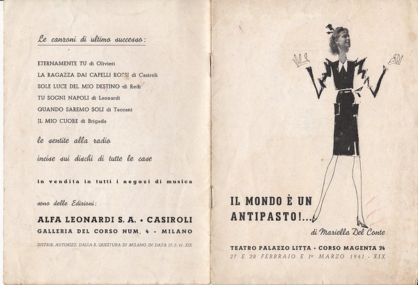 Il mondo è un antipasto. Teatro Palazzo Litta 27,28 febbraio e 1 marzo 1941. Programma.