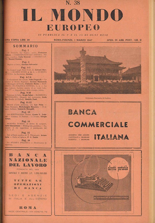 - Il mondo (Tipografia Vallecchi) [e Il Mondo Europeo (Tipografia, della Società Editrice Italiana)],