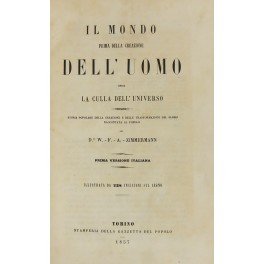 Il mondo prima della creazione dell'uomo ossia La culla dell'universo storia popolare della creazione e delle trasformazioni del globo raccontata al popolo dal D.re W.F.A. Zimmermann. Prima versione italiana. Illustrata da 238 incisioni sul legno
