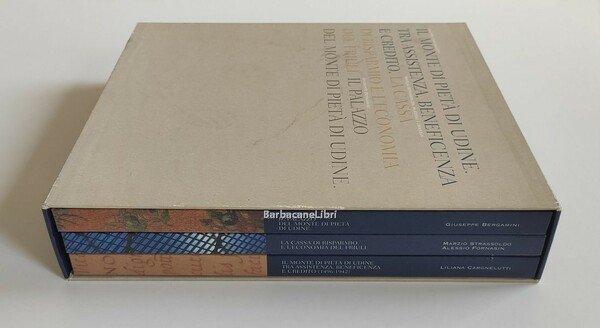 Cofanetto contenente tre volumi dedicati alla storia del Monte di Pietà di Udine: