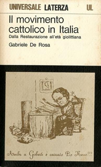 5. ed. 401 p. ; 18 x 11 cm. Universale Laterza, 153. Il complesso preludio storico alla costituzione di un partito politico cattolico in Italia, dalle illusioni neoguelfe all'Azione cattolica, dalla reazione intransigentista alla Democrazia cristiana di Murri, dagli esordi di Sturzo al Patto Gentiloni. Non un puro susseguirsi di dottrine o di organizzazioni, ma una storia d'Italia sotto l'angolo prospettico di un movimento di massa, che sarà fra i protagonisti dell'Italia postrisorgimentale e postfascista. Brossura editoriale, copertina illustrata a colori in cartoncino flessibile. Codice libreria 8073.