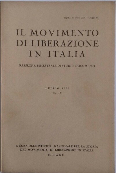 - Istituto Nazionale per la Storia del Movimento di Liberazione in, Italia – Milano 1952