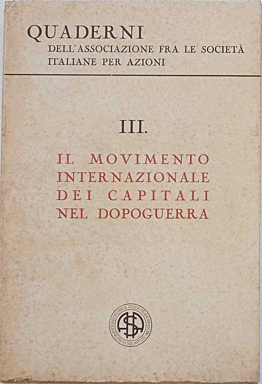 In 8° (cm. 23,5 x 16); pagg. 55; leggera cartonatura originale. Copertina un po' scurita. VG-. ** Quaderni dell'Associazione fra le Società Italiane per Azioni. III.