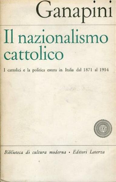 224 p. ; 21 x 13 xm. Biblioteca di cultura moderna, 683. Attraverso l'analisi della maggiore stampa cattolica italiana, sia quotidiana sia periodica, e della pubblicistica degli anni 1870-1914, questa ricerca tenta di ricostruire il filo conduttore degli orientamenti politici ed ideologici del mondo cattolico di fronte alla politica estera del Regno e al nascente movimento nazionalista. Brossura editoriale, coperta in cartoncino flessibile con titolo impresso al piatto e al dorso. Sovraccoperta in carta con titolo impresso in verde al piatto, in bianco su fondo nero al dorso. Qualche segno del tempo ai piatti (ingiallimento della carta), per il resto esemplare integro. Codice libreria 7371.
