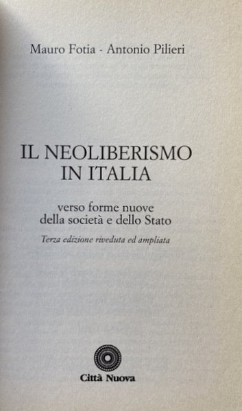 IL NEOLIBERISMO IN ITALIA VERSO FORME NUOVE DELLA SOCIETÀ E DELLO STATO. A CURA DI MAURO FOTIA, ANTONIO PILIERI