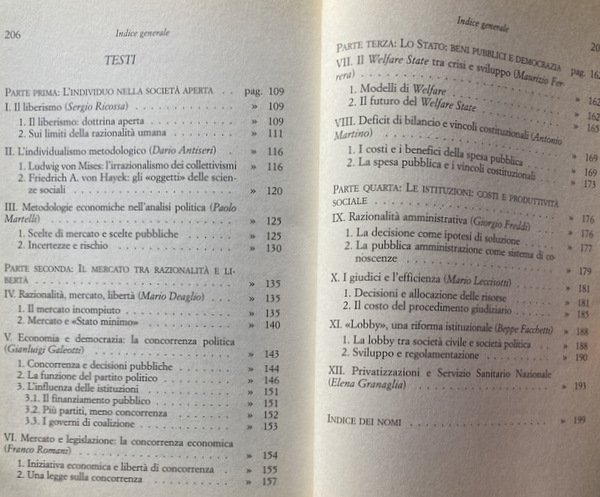 analisi aspetti azione base Bologna capitalismo cittadini collettiva compito complessità comportamento comune concetto concorrenza condizioni contributi controllo cooperazione costi crescita critica decisioni democrazia diritti domanda economica effetti efficienza fenomeni filosofia finanza fini fondo forme funzione generale governo grado gruppi Hayek individuale individui iniziativa interessi istituzionali istituzioni italiana lavoro legge liberale liberismo limiti logica mercato metodologico Milano modello morale Mulino neoliberisti norme opera organizzati Paesi passato politica potere Press prezzi principio privato problema processo pubblica ragione rapporto rappresentato razionalità realtà regole risorse risultati scambio scelta scienza secolo servizi settore situazioni sociale società spesa storica strategia struttura sviluppo teoria termini University vantaggio voto Welfare