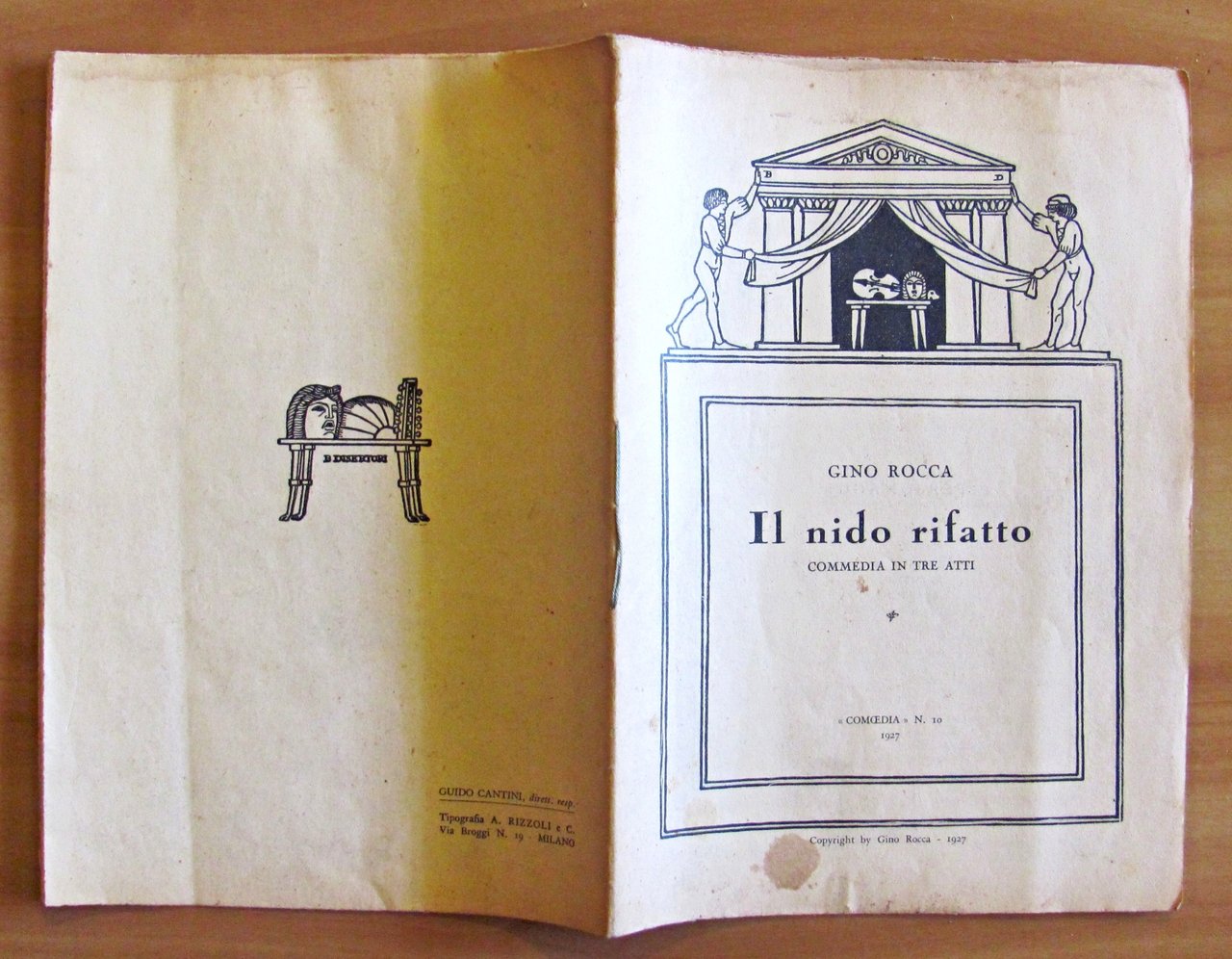 Comoedia N.10 - 1927. Copertina e testatine in b/n di Disertori. Copyright Gino Rocca, 1927. Brossura editoriale con macchiolina in basso alla copertina. 16x23; pp.30. RARO e in BUONISSIMO STATO  , Molto buono (Very Good)