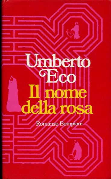 In-8° (21.5x13 cm), pp. 503 (11), legatura editoriale tela rigida rossa con titoli dorati al dorso, sovracoperta illustrata con lo schema del labirinto che appariva sul pavimento della cattedrale di Reims, alette paratestuali, contropiatti e sguardie figurati. Minimi segni d' uso e del tempo alla sovracoperta. Una firma di possesso all' occhiello. Minimo difetto ediìtoriale d' inchiostrazione al margine esterno delle pp. 215-16. Più che buon esemplare conservante il tagliandino del prezzo all' aletta posteriore della sovracoperta. Edizione originale. Il romanzo, di ambientazione medievale, e avente a protagonisti Guglielmo da Baskerville, frate francescano, e il novizio benedettino Adso da Melk, narratore della storia, conobbe un successo mondiale e fu trasposto per il grande schermo da Jean Jacques Annaud con Sean Connery come attore protagonista. Cfr. Spaducci, p. 120. Contursi, A021a.
