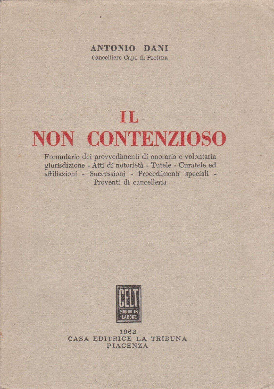 Il Non Contenzioso Libro Antonio Dani Tutele Curatele Successioni Tribuna 1962