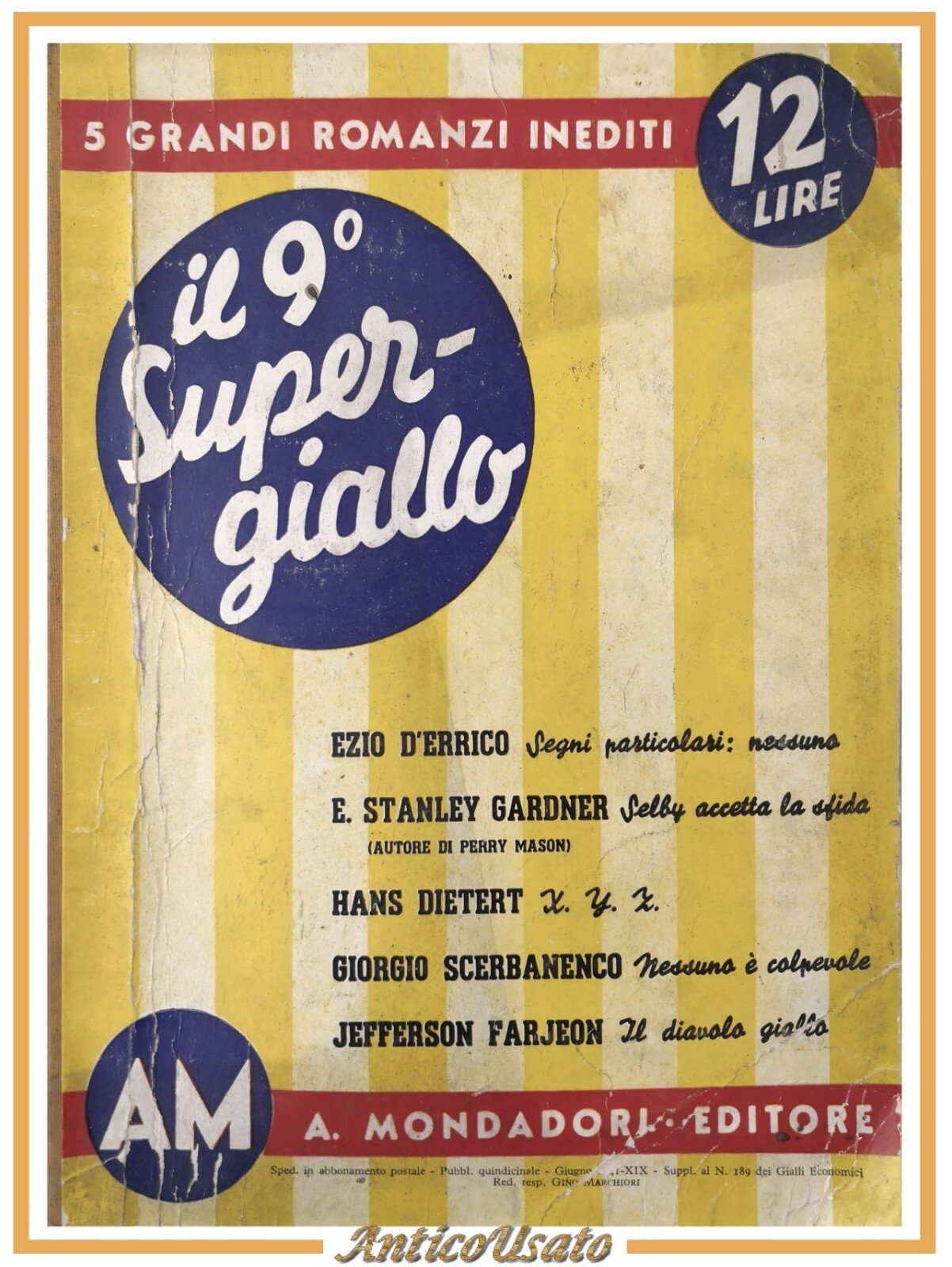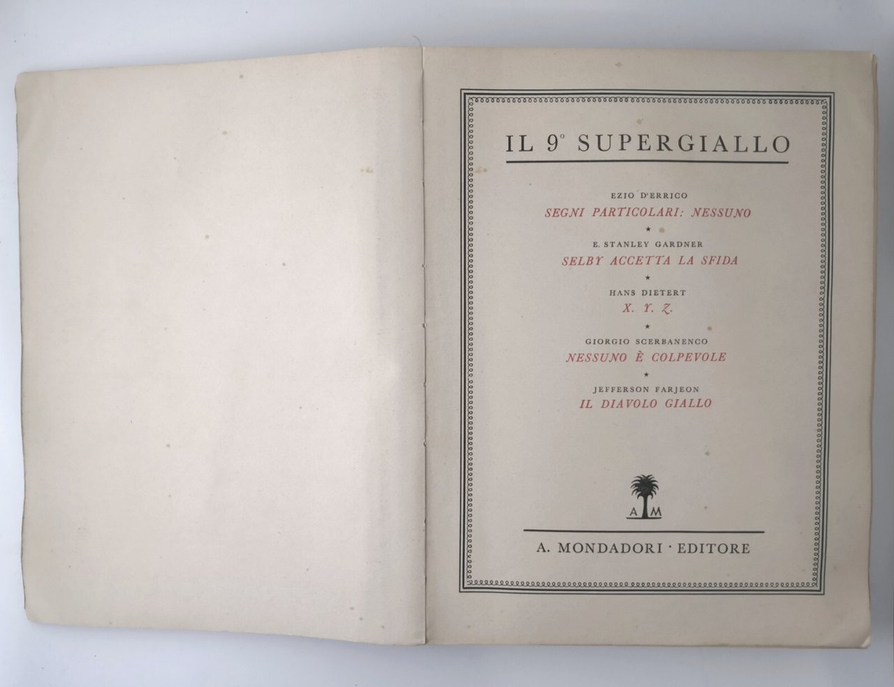 IL NONO SUPERGIALLO 5 romanzi 1941 Mondadori D'Errico Scerbanenco Libro giallo