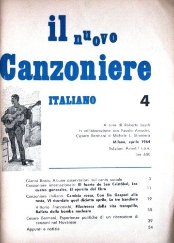 Il nuovo canzoniere italiano. 4. A cura di Roberto Leydi in collaborazione con Fausto Amodei, Cesare Bermani e Michele L. Straniero.