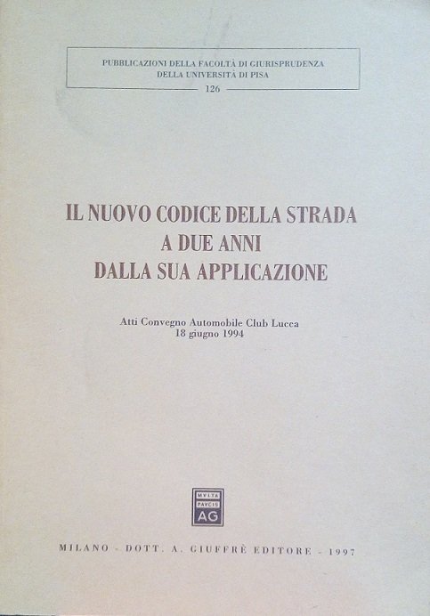 IL NUOVO CODICE DELLA STRADA A DUE ANNI DALLA SUA APPLICAZIONE - ATTI DEL CONVEGNO AUTOMOBILE CLUB LUCCA 18 GIUGNO 1994