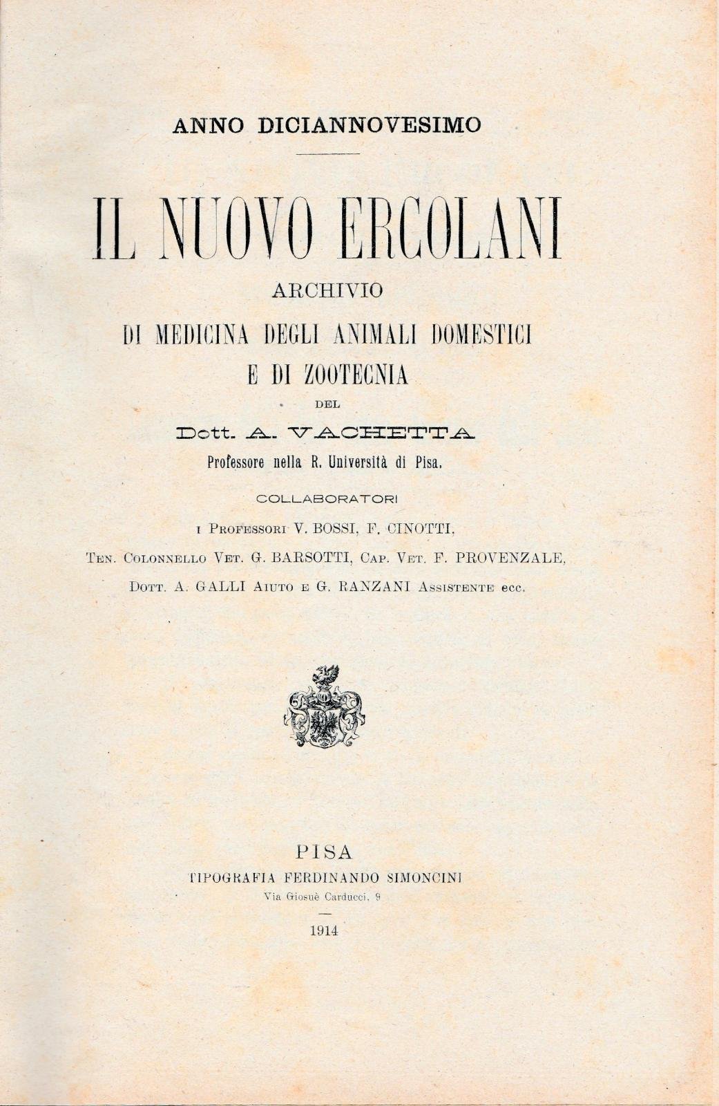 Il Nuovo Ercolani Archivio Di Medicina Animali Domestici E Di Zootecnia 1914