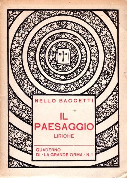 Il paesaggio, prima edizione 1925, pp. 47, formato 14 x 19,5.<BR>Copertina morbida illustrata con titoli in rosso al piatto anteriore. In prima pagina presente bella dedica dell'autore, datata febbraio 1929. <BR>Condizioni molto buone.