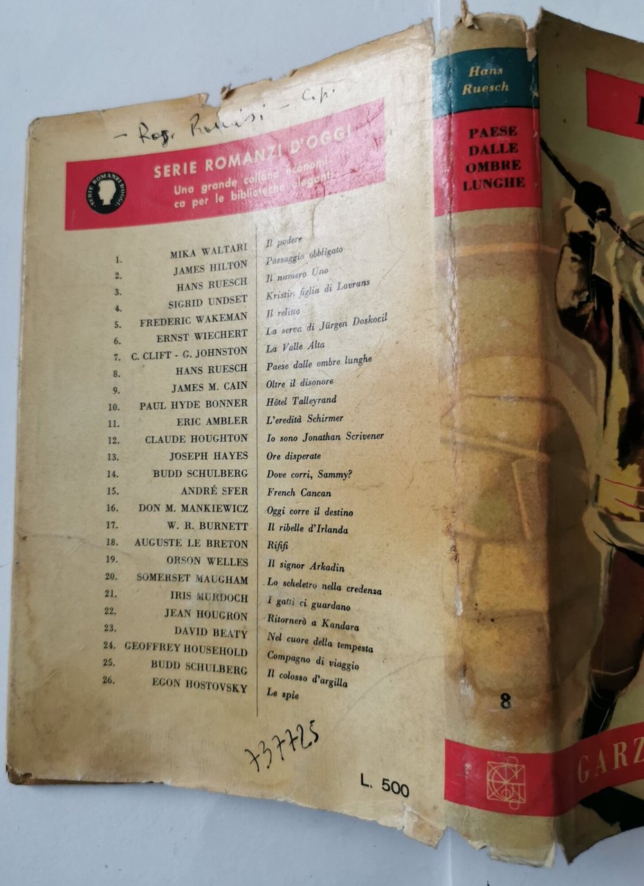 In 8', leg.ed. con sovracc., pp. 242; segni del tempo ,qualche scritta e qualche piccola mancanza al margine del piatto post. della sovracc., annotaz.al contropiatto post., interni bruniti. ***Due to bureaucratic reasons, books dated over 70 years old cannot be immediately exported, please contact us before placing the order.***
