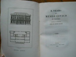 IL PALAZZO DEL MUSEO CIVICO IN VICENZA DESCRITTO ED ILLUSTRATO DALL' AB. ANTONIO MAGRINI VICENZA DALLA TIPOGRAFIA EREDI PARONI 1855In 8°, pag. 79, legatura editoriale, tavola in b/n in antiporta.