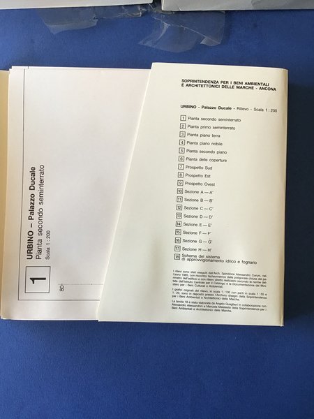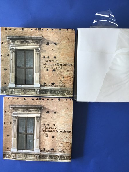 Vol. I: Restauri e ricerche; Vol. II: Rilievi. Urbino, Palazzo Ducale, Ambienti sotterranei, 28 settembre - 29 dicembre 1985. Numerose illustrazioni in bianco e nero. Lieve macchia di umidità sul retro copertina del primo volume