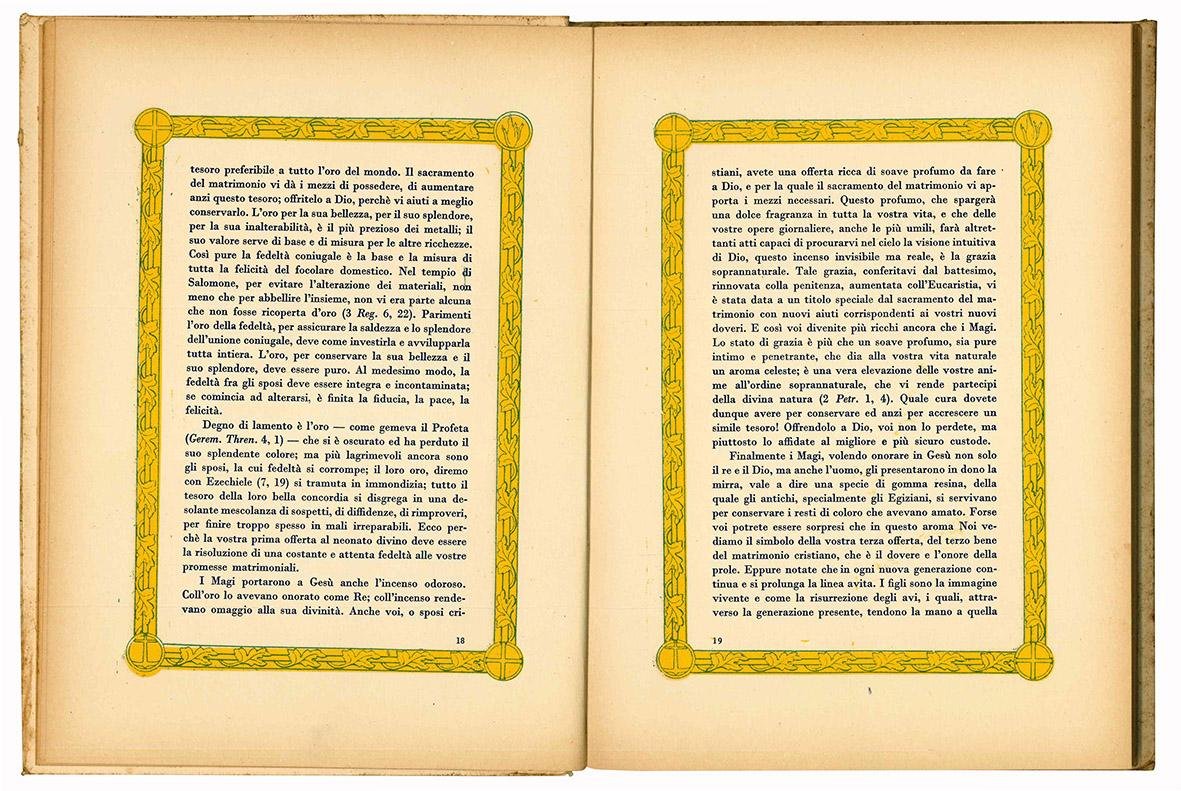 In 8vo (mm 237x173); pp. 125, [2]. Testo stampato in blu entro cornici gialle e blu. Carta leggermente ed uniformemente brunita. Cartone editoriale con titolo in oro al piatto anteriore.
