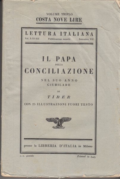 In-16 (Cm 19 x 14), pp. 292, collana Letteratura Italiana, volume triplo X, XI, XII, 25 illustrazioni bianco e nero fuori testo. Foto di Pio XI all'antiporta. Millimetrico strappetto alla brossura, leggera brunitura della carta. INTONSO - OTTIMO