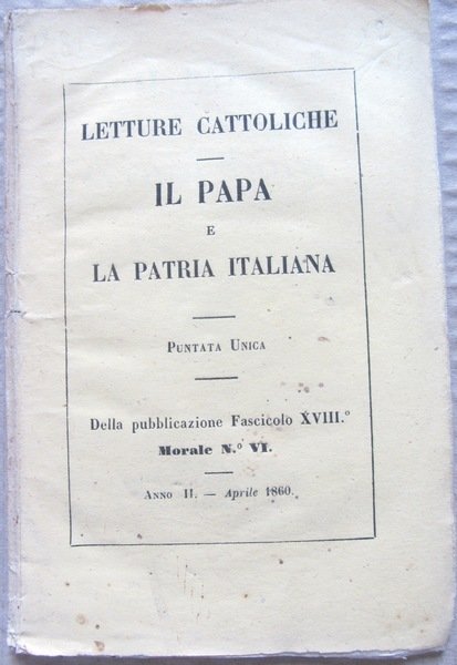 IL PAPA E LA PATRIA ITALIANA, PUNTATA UNICA DELLA PUBBLICAZIONE FASCICOLO XVIII. MORALE N° VI. Anno II. - Aprile 1860.