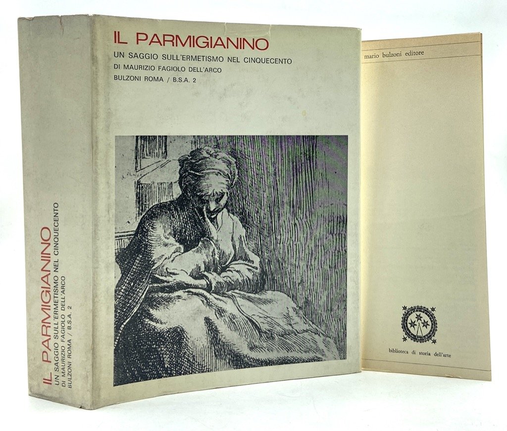 Tela editoriale con sovraccoperta illustrata, cm 22 x 16, pp 543 (1), 338 illustrazioni in nero fuori testo, una tavola a colori e una vignetta sul frontespizio. Buono stato, conserva la sovraccoperta e la scheda editoriale. Edizione originale e non più ristampata di questa monografia dedicata alla pittura del Parmigianino esaminata alla luce del pensiero alchemico, attraverso l’esame di alcune opere e l’individuazione di temi e di uno stile legati alla dottrina ermetica. Non comune.