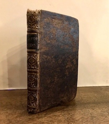 12mo (cm. 13), 228 pp. Frontespizio in rosso e nero con marca editoriale xilografica (Fortuna in mare su globo con vela al vento). Legatura coeva in piena pelle con nervi, ricchi fregi e titolo impresso in oro al ds. (tracce d’usura e mancanza alla cuffia superiore). Tagli rossi. Ottimi interni.