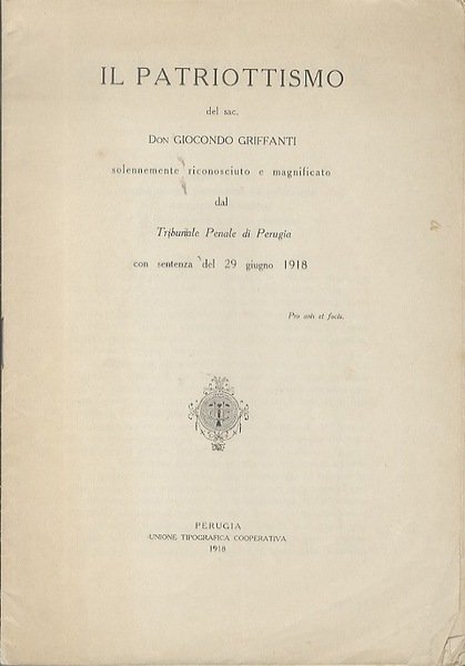Il patriottismo del sac. Giocondo Griffanti solennemente riconosciuto e magnificato dal Tribunale Penale di Perugia con sentenza del 29 maggio 1918.